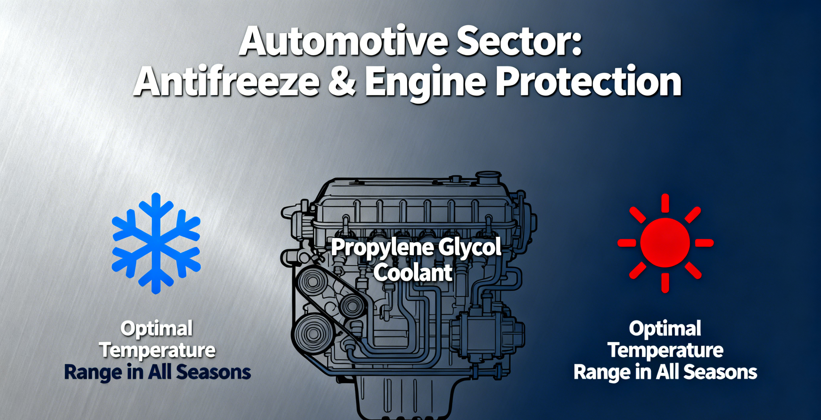 In automotive cooling systems, propylene glycol, as a core component of high-efficiency antifreeze, can effectively lower the freezing point of the coolant while increasing its boiling point. Whether in cold winters or hot summers, propylene glycol can ensure that the engine operates within the optimal temperature range, extending the engine's service life.